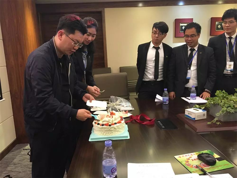 在切蛋糕环节,由张董事长亲自切开蛋糕,并分发给各个同事,会议室内一阵阵欢声笑语,气氛欢快而温馨。